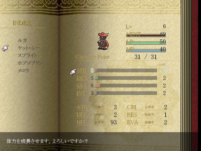 「レベルアップ時のポイントで、能力値を上昇させていく」システム。