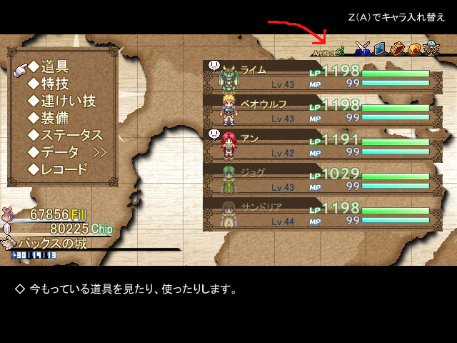 メニューさえ開けば、アーティファクトがセットされているのかいないのか、