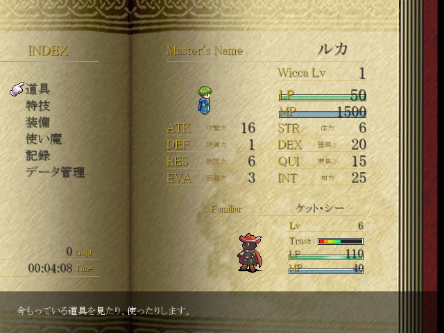 主人公の能力値と、使い魔のデータを描写。バトラーはアニメーションします。